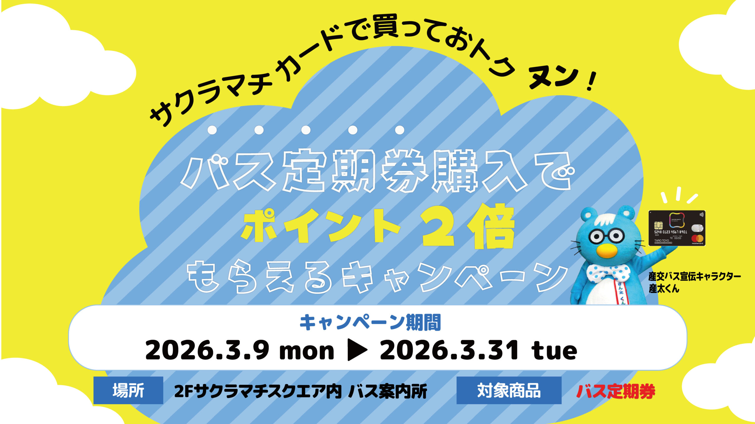 3月9日から!バス定期券購入でサクラマチカードポイント2倍もらえるキャンペーン