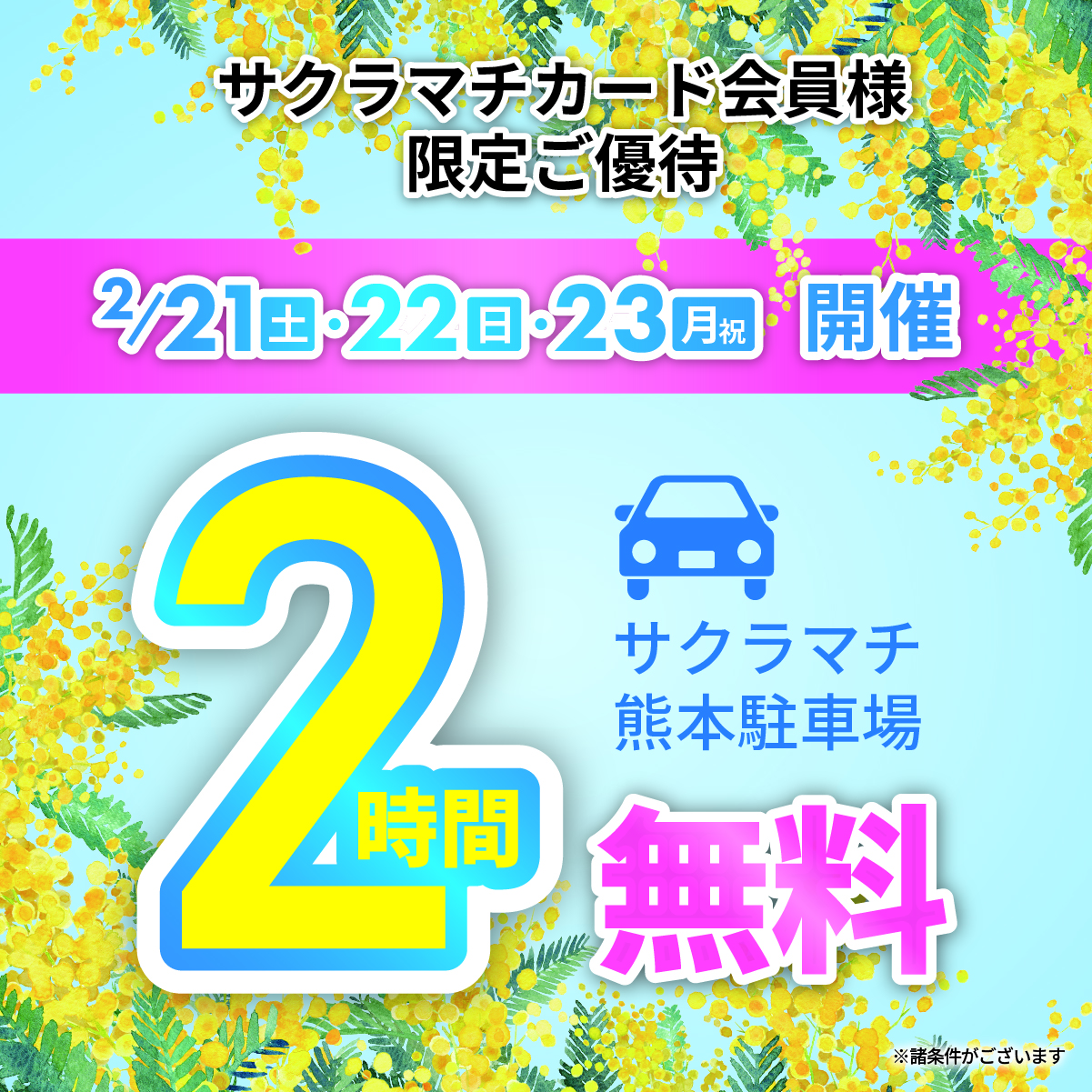 さらに!さらに!、サクラマチ熊本駐車場も2時間無料でご利用いただけます。