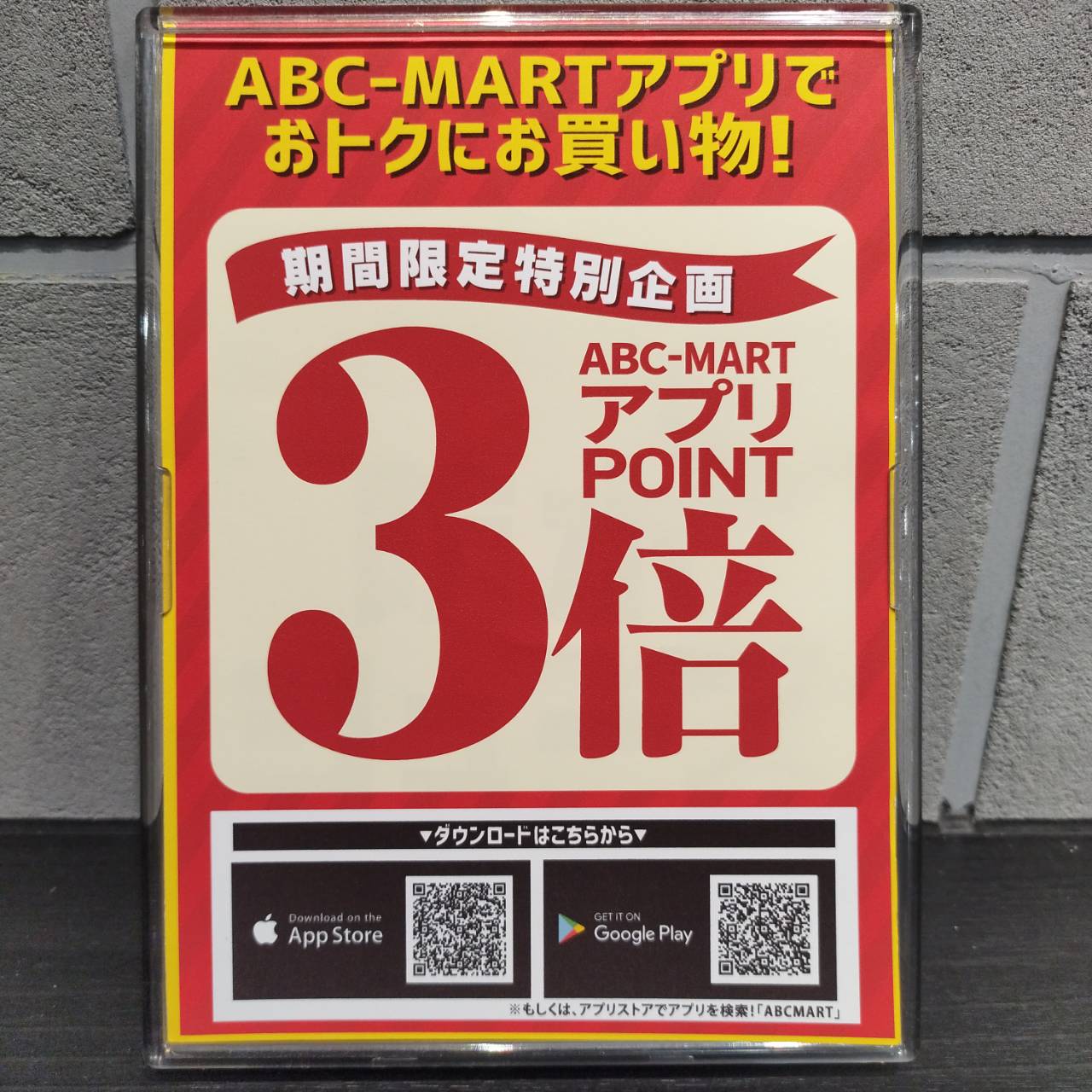 只今ABC-MARTアプリポイントが3倍になるのはサクラマチクマモト店だけです!!!