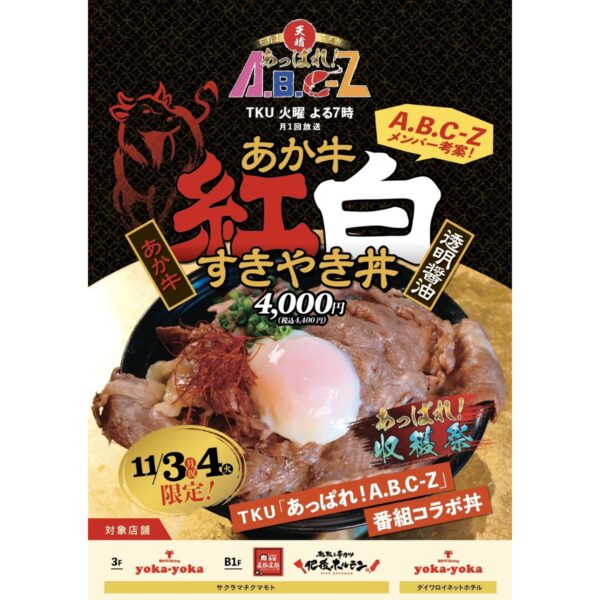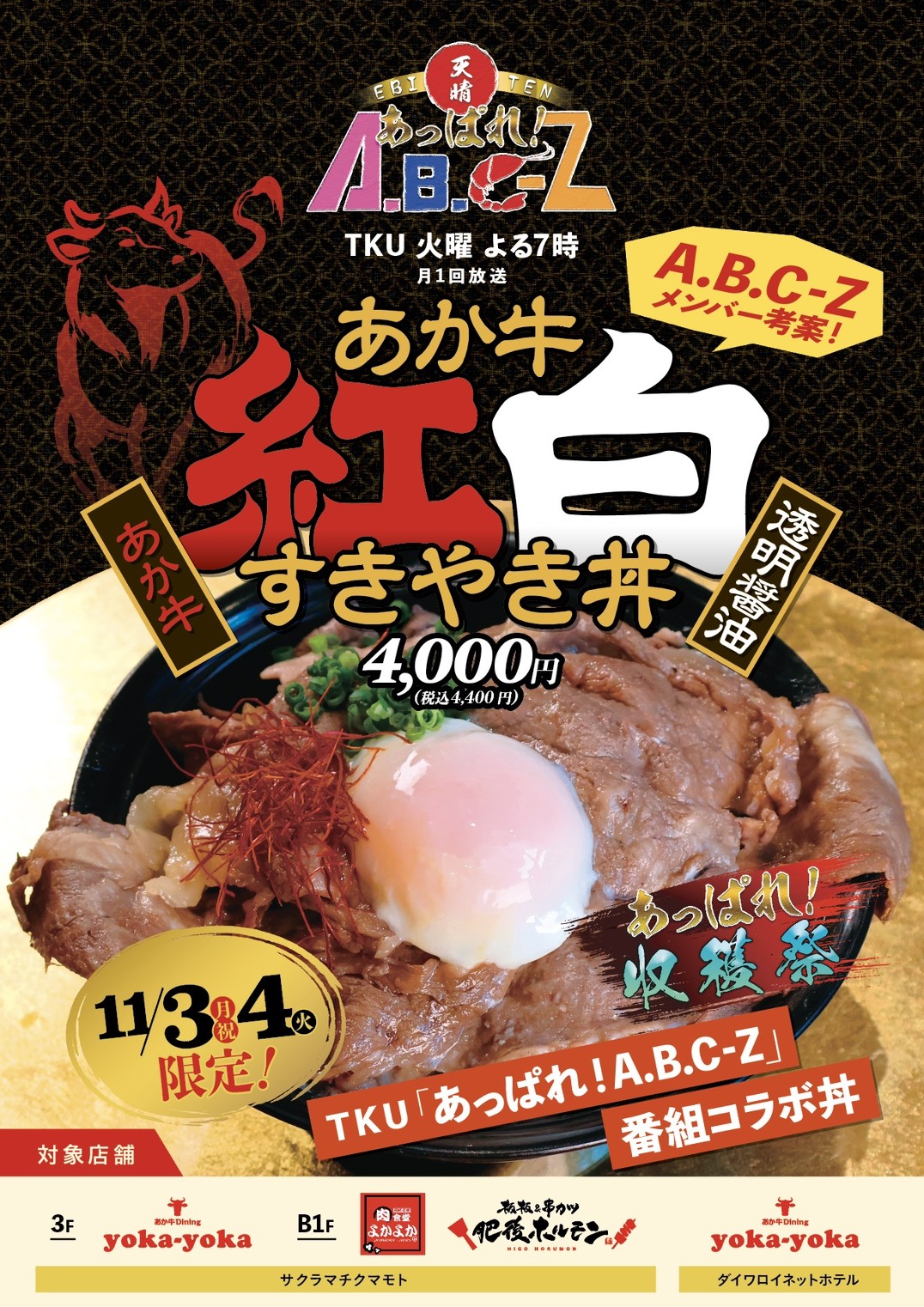 あの大人気番組【TKU「あっぱれ!A.B.C-Z」】との夢のコラボメニューが登場します🎉‼️