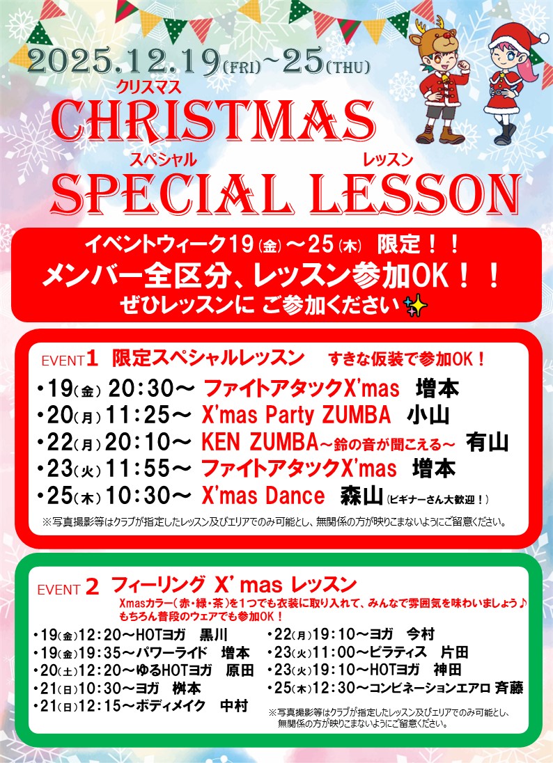 ぜひクラブでこの日しかない特別レッスンをお楽しみください!!