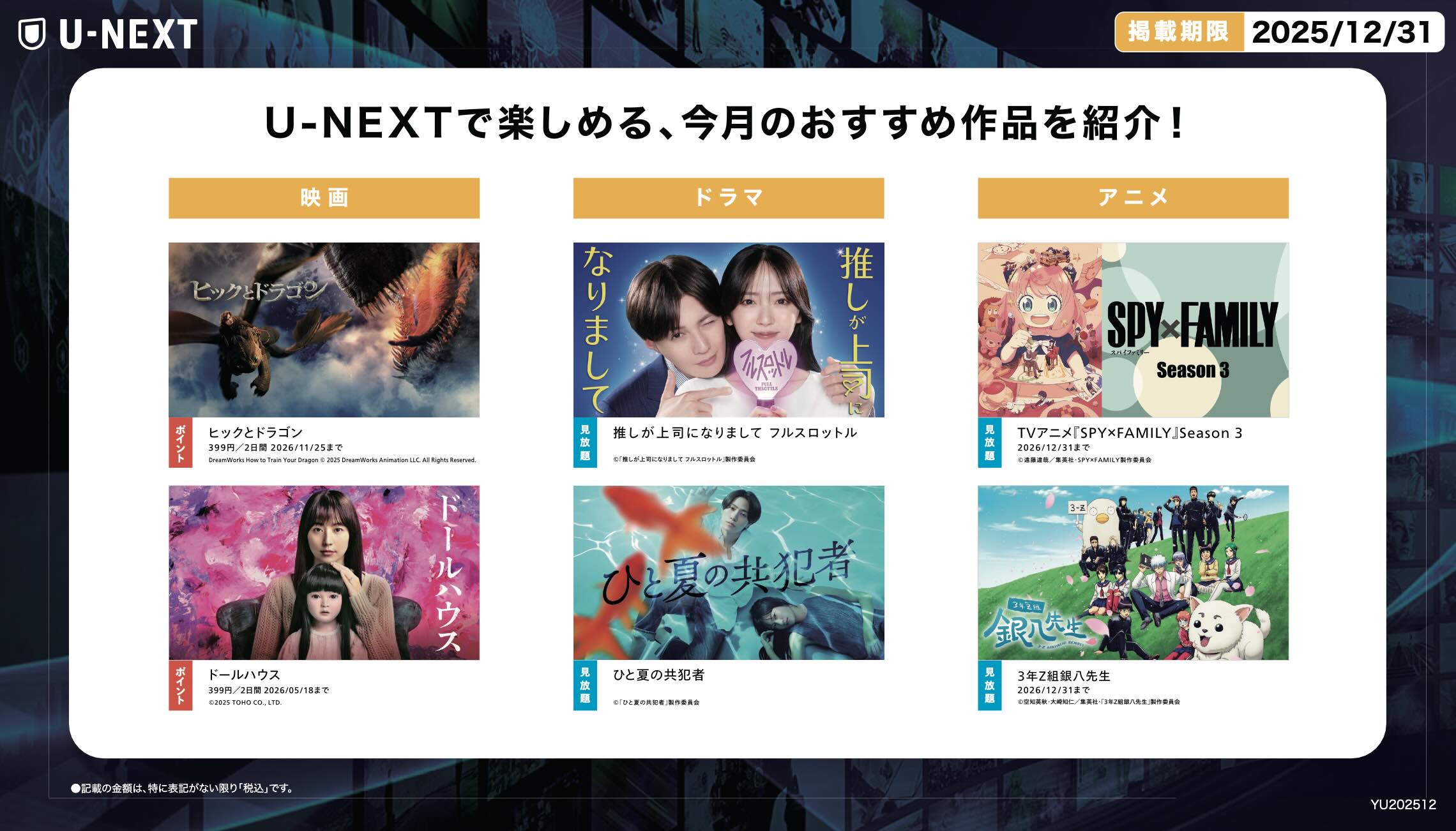 今ならU-NEXTでも映画館でも利用できる1,200Pプレゼント中です!