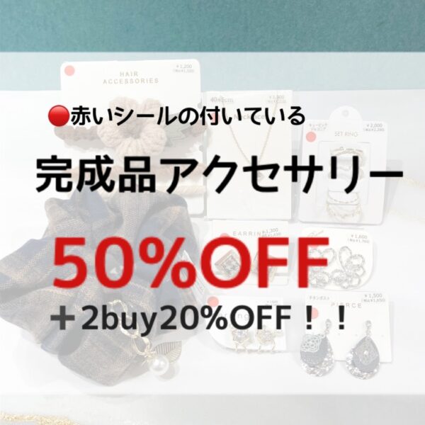 赤いシールが付いている完成品アクセサリーは50%OFF!