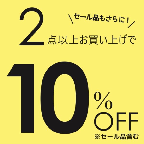 店内全品2点以上で10%OFFのキャンペーンを開催いたします✨