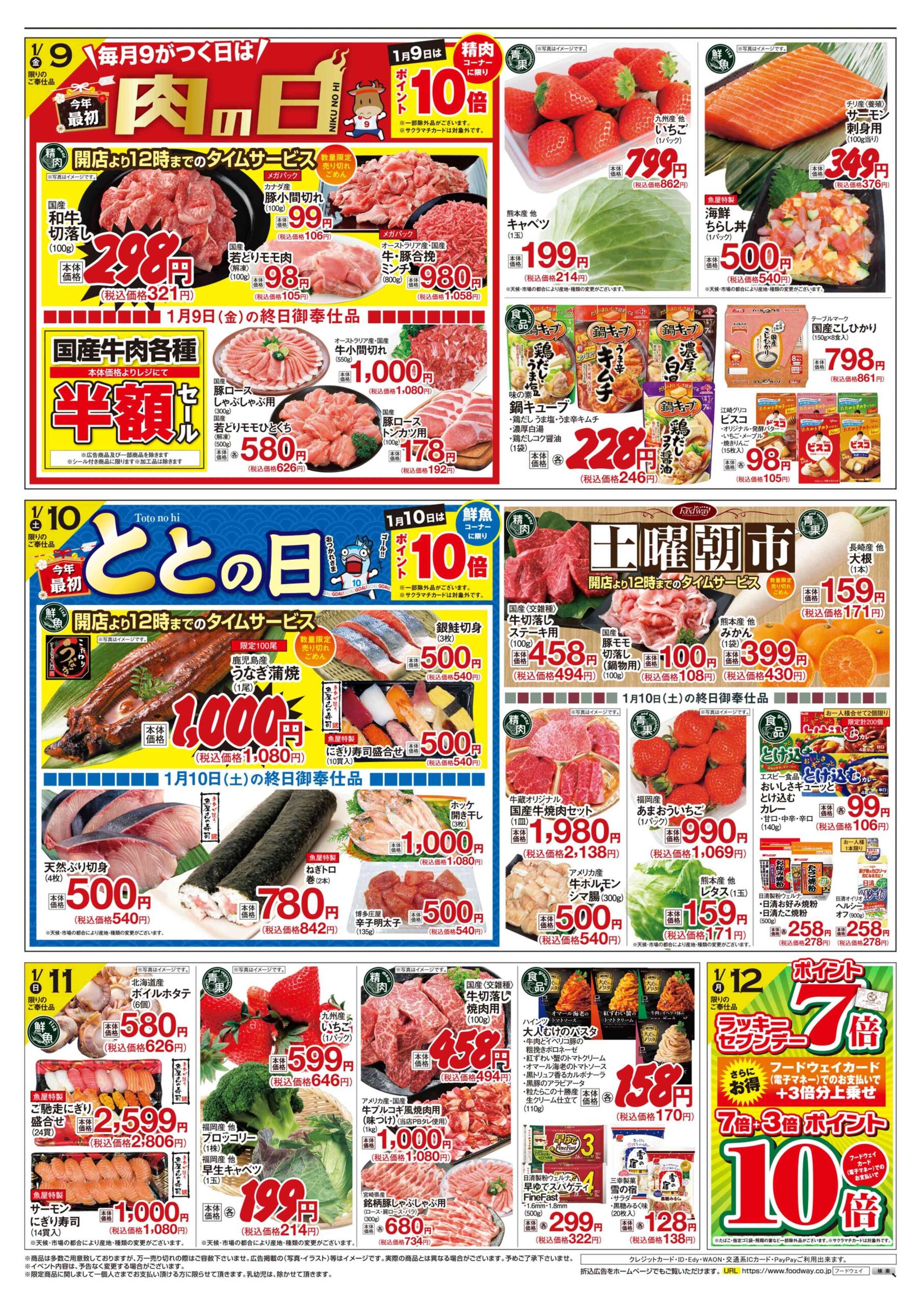 TOP / ニュース / フードウェイ 7日~12日チラシ 今年最初の生鮮リレー開催! NEWS ショップの最新情報をお届けします お知らせ フードウェイ 7日~12日チラシ 今年最初の生鮮リレー開催! Food way フードウェイ フードウェイ SHARE SHOP情報を見る PREV前の記事へNEXT次の記事へ 最新ニュース 2026.01.08|お知らせ 【パーツクラブ】ワークショップのご案内 view more 2026.01.07|お知らせ 【まもなく募集開始! 】荒川DANCE FESイベント✨ view more 2026.01.06|お知らせ ご予約受付中【CROWNGardenex】 view more もっと見る カテゴリから探す お知らせ 新商品 おすすめ商品 期間限定 イベント・キャンペーン プレゼント キーワードから探す HOTスタジオ HOTレッスン PT ZUMBA おくりもの お土産 イベント カラコン キッズ キッズスクール ギフト コンタクトレンズ サクラマチ サクラマチクマモト シェイプアップ ジム スイーツ スタイルアップ ストレス発散 セントラルスポーツ ダイエット ダンス デート トレーニング バイク パーソナル パーソナルトレーニング ピラティス フィットネス フィットネスジム プレゼント ボディメイク マンツーマンレッスン ヨガ レッスン ワッフル 中央コンタクト 情操教育 成人式花束 新商品 期間限定 機能改善 筋トレ 自分磨き 苺シュー INFORMATION サクラマチクマモトからのお知らせ もっと見る