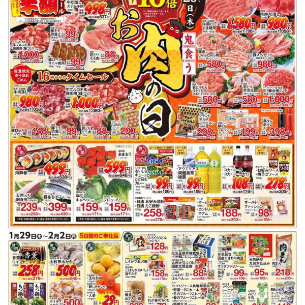 TOP / ニュース / フードウェイチラシ 肉の日&恵方巻 NEWS ショップの最新情報をお届けします お知らせ フードウェイチラシ 肉の日&恵方巻 Food way フードウェイ フードウェイ SHARE SHOP情報を見る PREV前の記事へ 最新ニュース 2026.01.29|お知らせ 桜町熊本城前店 お待たせいたしました!!\炙りバターチャーシュー丼/販売開始!! view more 2026.01.29|お知らせ 【募集開始】新春ご入会キャンペーン第3弾!! view more 2026.01.28|お知らせ アウターのお直しおまかせください! view more もっと見る カテゴリから探す お知らせ 新商品 おすすめ商品 期間限定 イベント・キャンペーン プレゼント キーワードから探す HOTスタジオ HOTヨガ PT Zoff おくりもの キッズ キッズスクール キッズ体育 サクラマチ サクラマチクマモト シェイプアップ シュークリーム シュークリーム専門店ウルル ジム スクール ストレス発散 セントラルスポーツ ゾフ ダイエット ダンス デート トレーニング バイク パーソナルトレーニング ピラティス フィットネス フィットネスクラブ フィットネスジム ボディメイク マット ヨガ レッスン 中央コンタクト 体操教室 体験 情操教育 新商品 期間限定 機能改善 眼鏡 習い事 自分磨き 苺 跳び箱 鉄棒 INFORMATION サクラマチクマモトからのお知らせ もっと見る