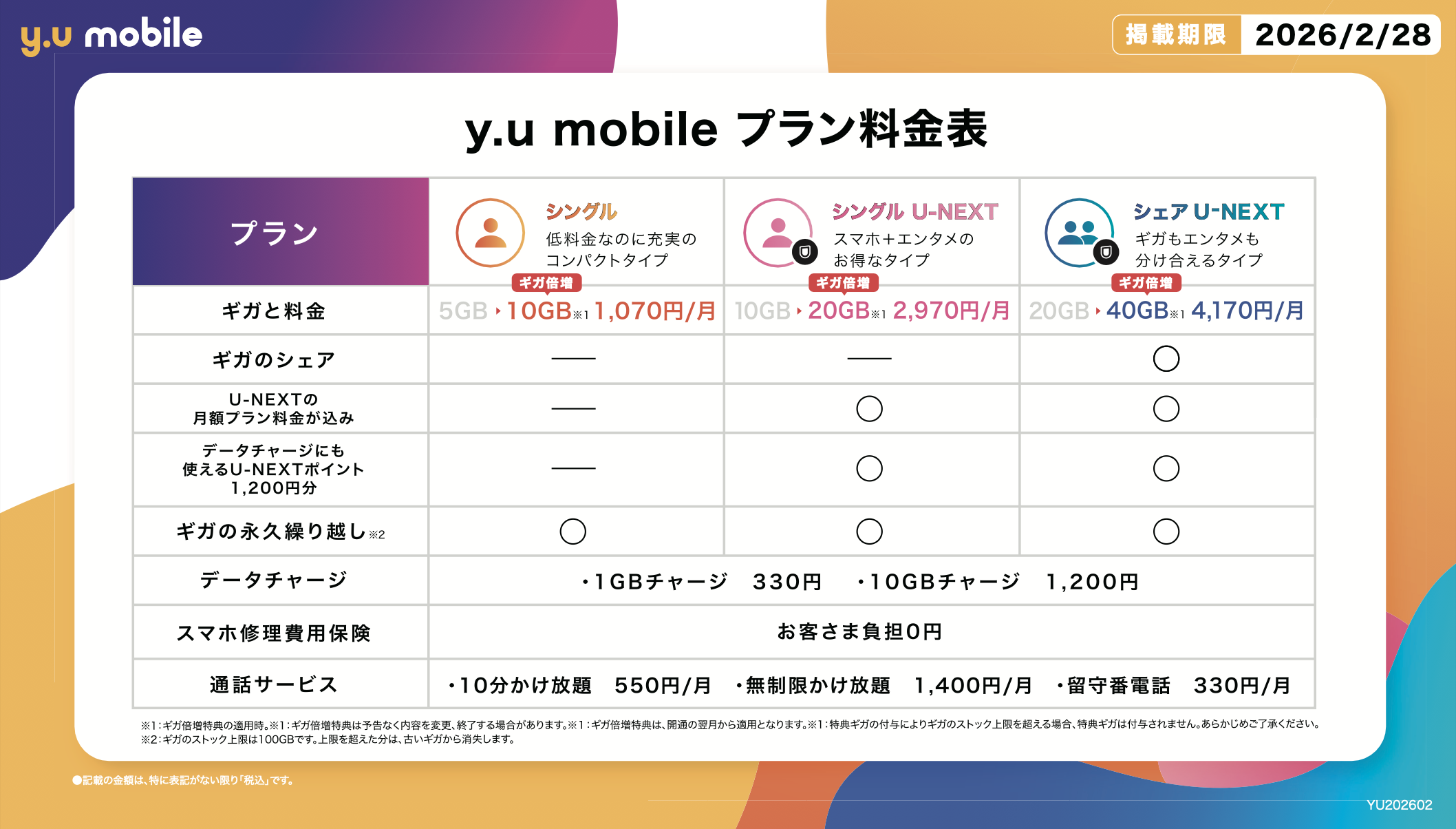 y.u mobile 2月キャンペーン🍫