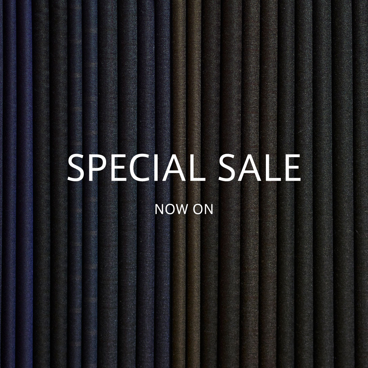 現在開催中の“SPECIAL SALE”のご案内です。新しい季節の訪れを前に、上質な生地で仕立てるオーダースーツを、よりスマートに手に入れていただける機会をご用意いたしました。