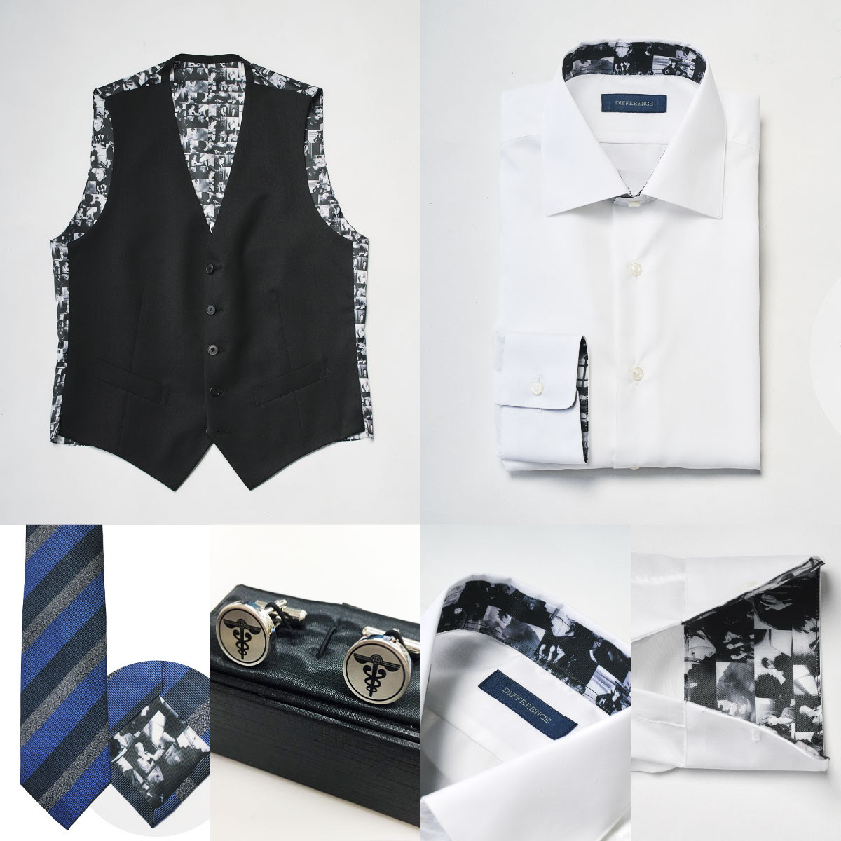物語の断片をモノクロームのデザインで再構築し、表向きはプロフェッショナルな佇まい、内側には揺るぎない信念を秘める仕上がりとなりました。