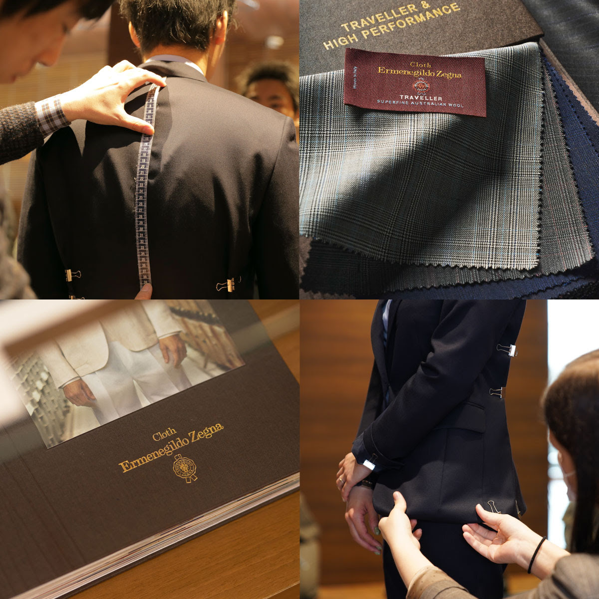 ショップでは、ゼニアの生地が持つ独特の落ち感や光沢を熟知したテイラーが、お客様のライフスタイルに合わせてフィッティング。