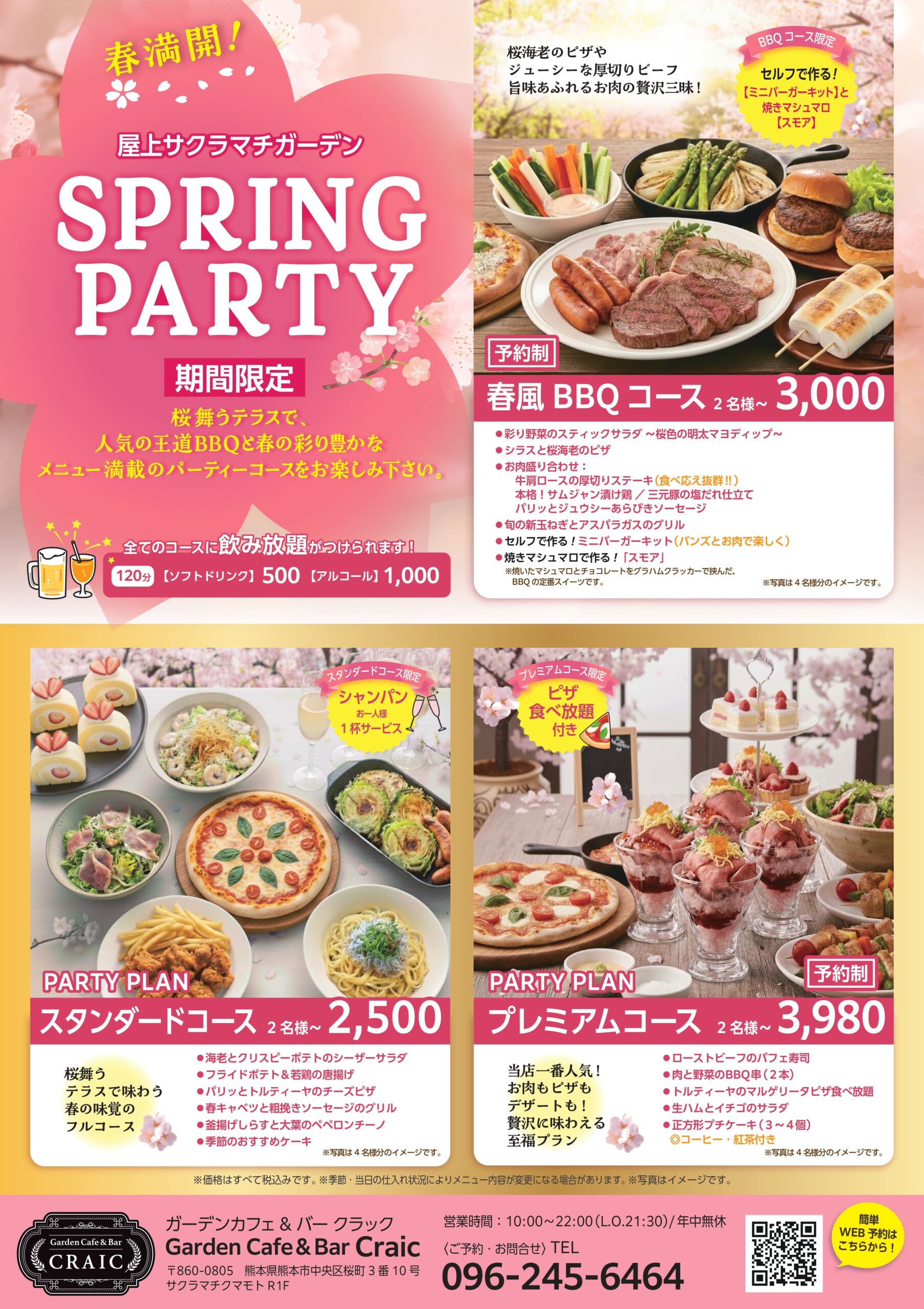 TOP / ニュース / サクラマチ屋上で今年もビアガーデン開催! NEWS ショップの最新情報をお届けします お知らせ サクラマチ屋上で今年もビアガーデン開催! Garden Cafe & Bar CRAIC ガーデンカフェ&バー クラック サクラマチ屋上「Garden Cafe & Bar CRAIC」では3月3日より春のBBQコースをはじめとする豊富なメニューでビアガーデンを開催いたします。気持ち良い春を感じながら、屋上の開放的な空間で彩り豊かなメニュー満載のパーティーコースをお楽しみ下さい。現在予約受付中! ~100名様でも柔軟に対応可能です。お気軽にご相談ください。 SHARE SHOP情報を見る PREV前の記事へ 最新ニュース 2026.02.28|お知らせ フードウェイ今週末のチラシ ひなまつり view more 2026.02.27|お知らせ 【NEW ARRIVAL】Cloth Ermenegildo Zegna view more 2026.02.27|お知らせ フードウェイ今週末のチラシ 青果の日・ひなまつり特集 view more もっと見る カテゴリから探す お知らせ 新商品 おすすめ商品 期間限定 イベント・キャンペーン プレゼント キーワードから探す HOTヨガ Zoff エアロ エアロビクス キッズスクール キッズ体育 クレープ コンタクトレンズ サクラマチクマモト シェイプアップ シュークリーム専門店ウルル シル活 シール ジム スイーツ スクール ストレス発散 セントラルスポーツ ゾフ ダイエット ダンス デート トムとジェリー バイク パーソナルトレーニング ピラティス フィットネス フィットネスクラブ フィットネスジム ボディメイク ボール マット マンツーマン指導 ヨガ レッスン 中央コンタクト 会員紹介 個別指導 機能改善 移籍 習い事 自分磨き 跳び箱 鉄棒 ¥0 INFORMATION サクラマチクマモトからのお知らせ もっと見る
