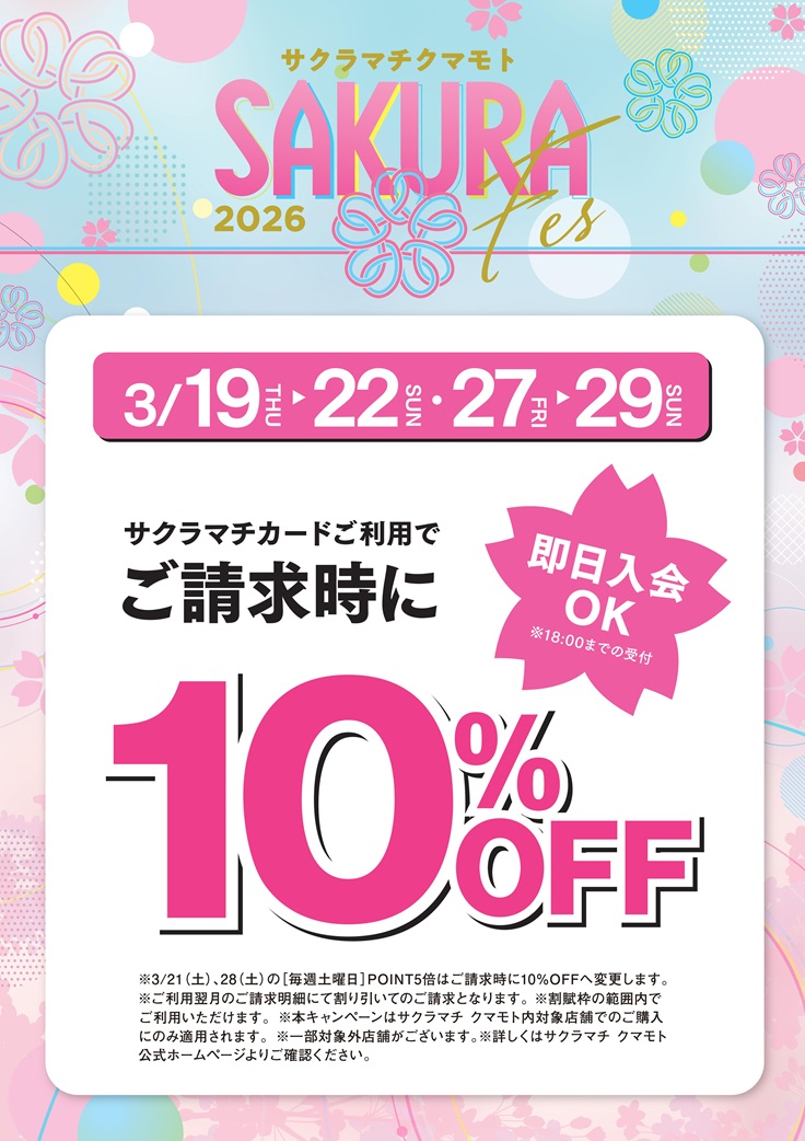 3/19(木)~22(日)・27(金)~29(日) 開催!サクラマチカード10%OFFキャンペーン