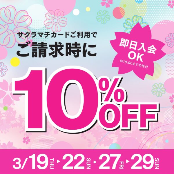 サクラマチカードをご利用いただくと、ご請求時に10%OFF!