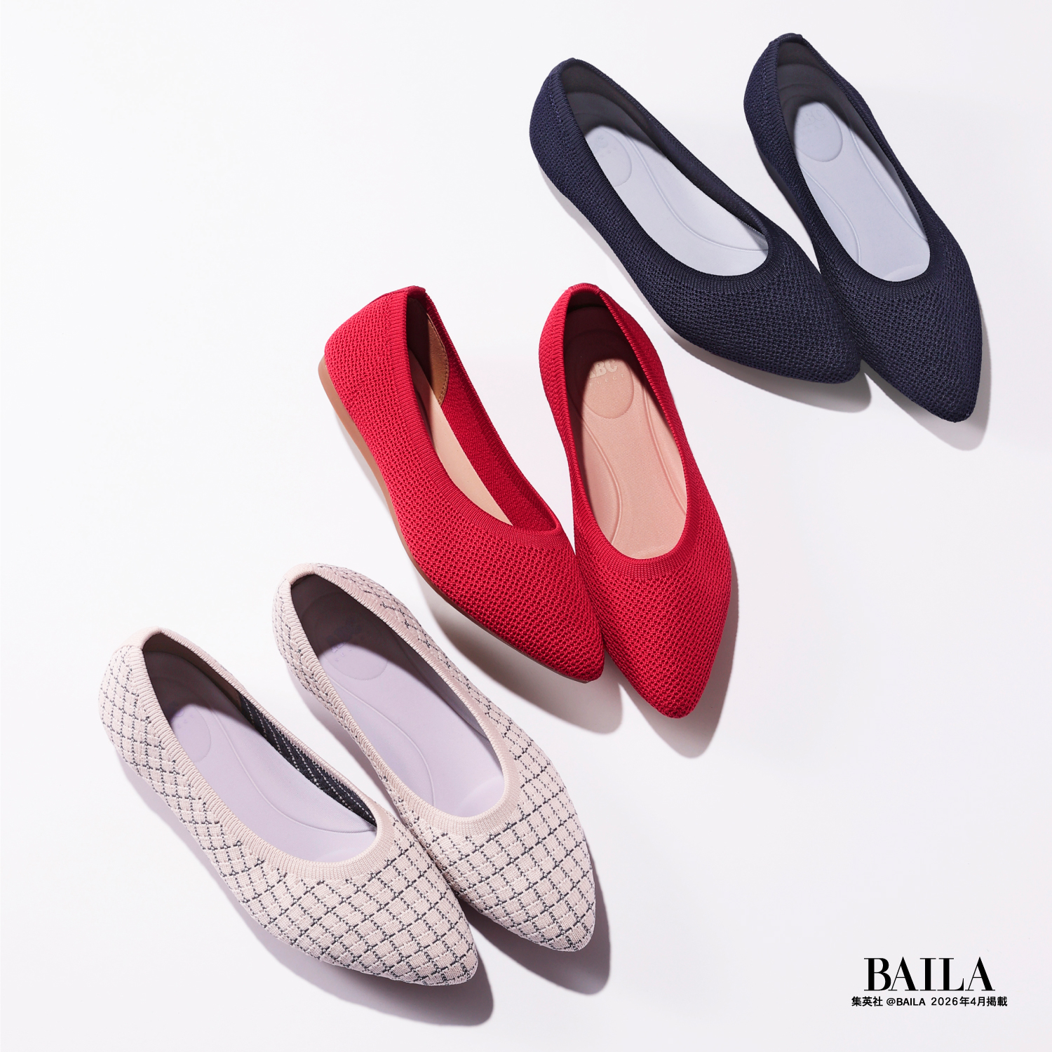 ニット素材で柔らかいソールでどんな動きにもついてくる、まるで素足のように快適に履けるニットパンプス!