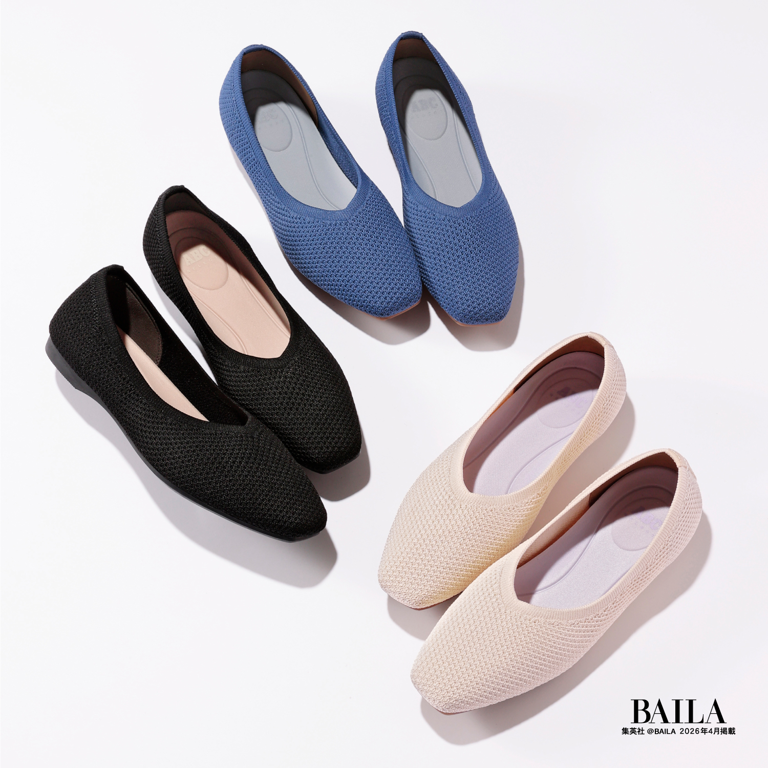 従来のニットパンプスの軽量と洗える仕様はそのままに、冷感糸を使ったニットを使用しさらっとした履き心地の接触冷感機能を追加しました🫧