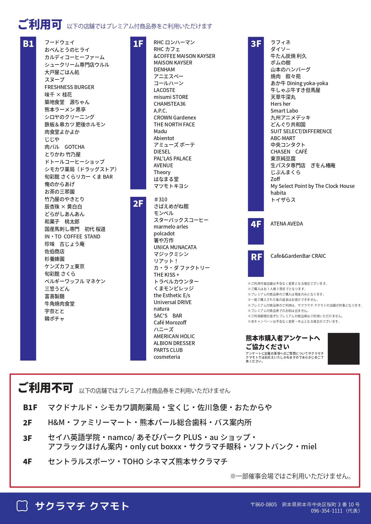 ※1F マツモトキヨシでは、プレミアム商品券による1,000円以下の商品のご購入はできません。