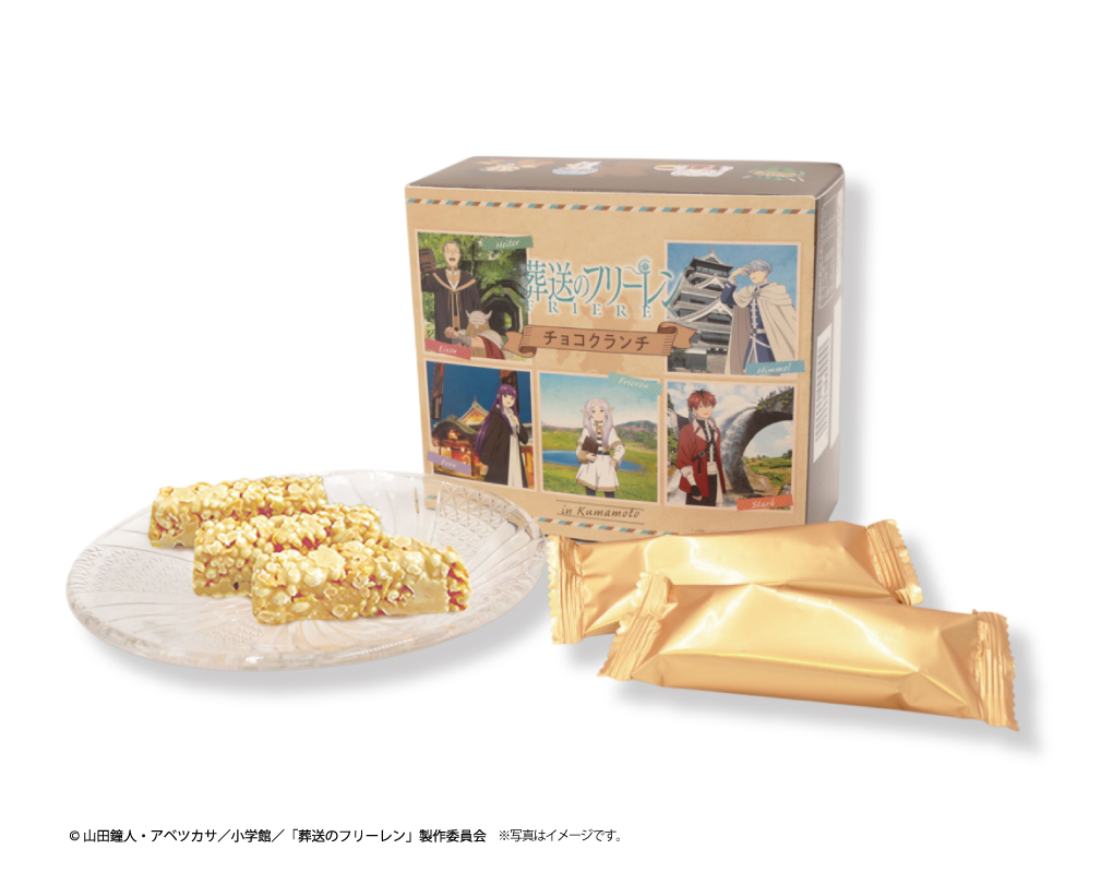 熊本県産甘夏を使用した、甘酸っぱく爽やかな風味のクランチチョコ。パッケージの随所にキャラクターをデザインしています。お菓子を食べ終わると、あの名場面を思い出すかも…?