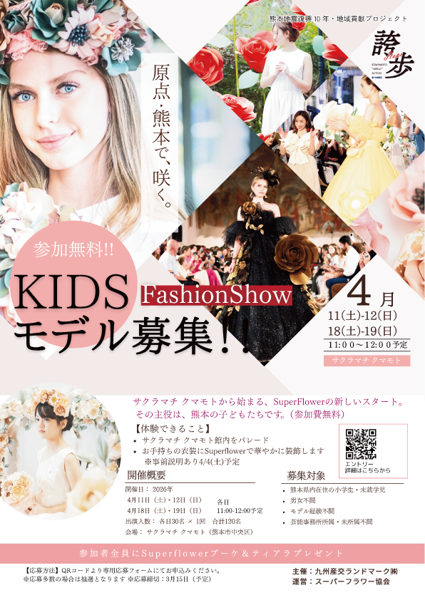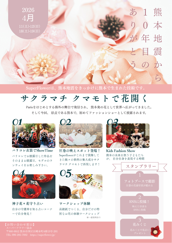 熊本地震をきっかけに熊本で生まれた技術「SuperFlower(スーパーフラワー)」が、世界各国の舞台を経て、原点である熊本で初のファッションショーを開催します 。